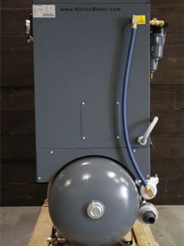 The screw compressor is rated for continuous duty and will last for thousands of hours with proper minimal maintenance. The integrated dryer and supplemental filtration removes moisture, oil and particulate matter from the air produced to keep the membrane in top performance. The Nitrox Maker comes in 4 sizes to match the majority of high pressure compressors used by diving businesses.